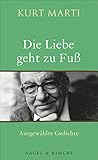 Die Lyrik Kurt Martis ist kanonische Schweizer Literaturgeschichte. Marti hat die konkrete Lyrik mit politischen Inhalten verbunden, die Dialektlyrik "an die Weltsprache der Poesie angeschlossen", die religiöse Lyrik auf provokante Art von kirchlichen Konventionen befreit, eine Liebeslyrik von eigener Schönheit geschaffen. Für sein dichterisches Werk wurde Kurt Marti vielfach ausgezeichnet. Zu seinem ersten Todestag, im Frühjahr 2018, erscheinen die wichtigsten Lyrikbände gesammelt in einem Band ausgewählter Gedichte: "Die Liebe geht zu Fuß".