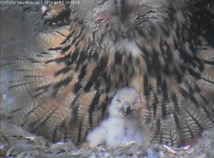 Bei den Uhus wachsen und gedeihen die beiden Küken ganz prächtig.