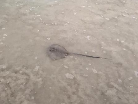 Hier ein Rochen, davon schwammen viele nachmittags dort herum.