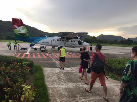 Das ist die kleine Propellermaschine, mit der wir von Praslin nach Mahé geflogen sind: