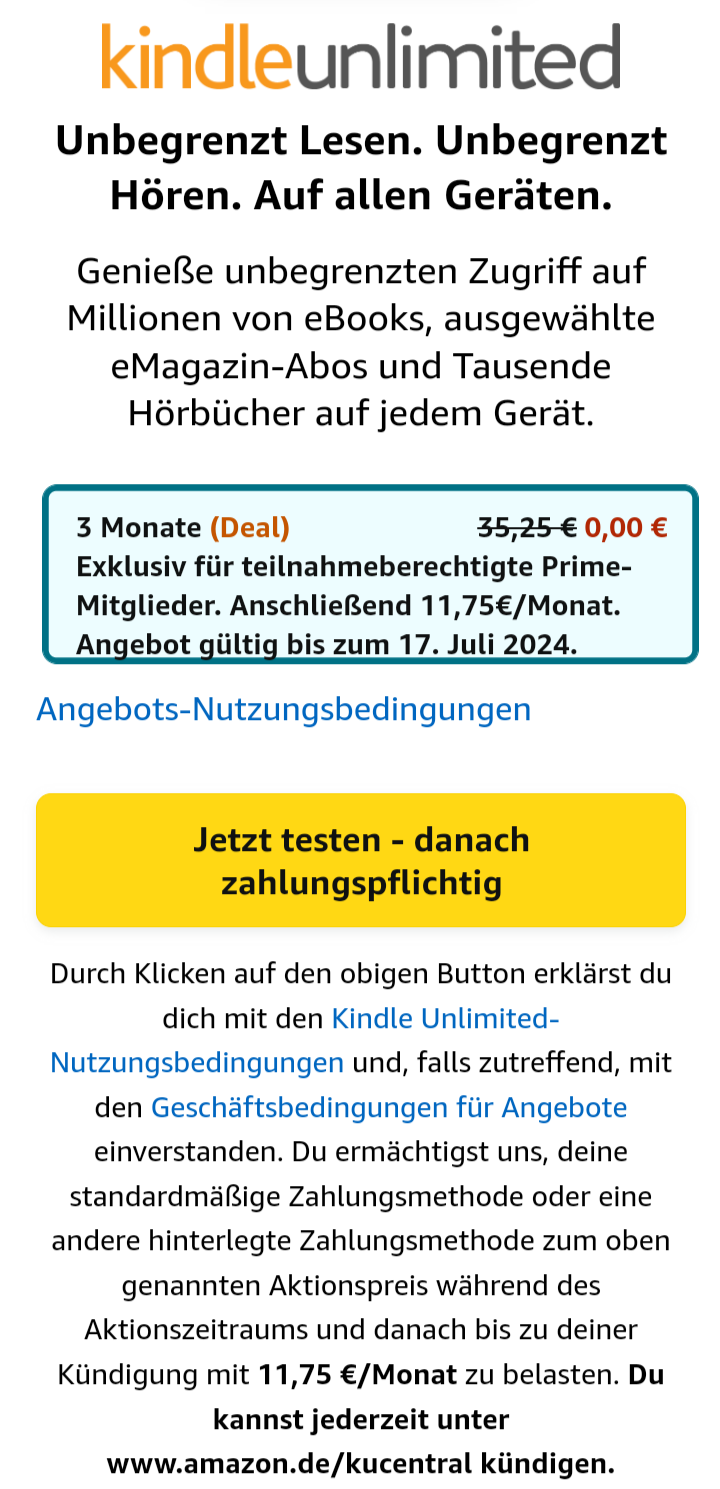 Für Prime Mitglieder gibt es grad drei Monate Kindle unlimited umsonst… Allerdings kenn ich die genauen Konditionen nicht