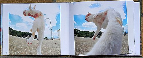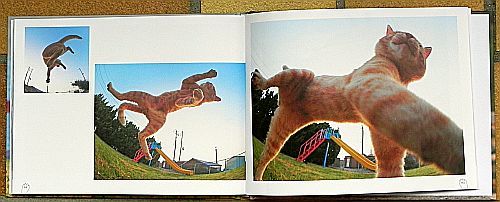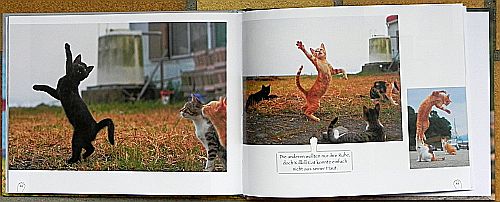 „Bei der Entstehung der Fotografien kam kein Tier zu Schaden. Der Fotograf benutzte Spielzeug, um die Katzen anzulocken, und drückte im richtigen Moment den Auslöser.“ (Seite 96)