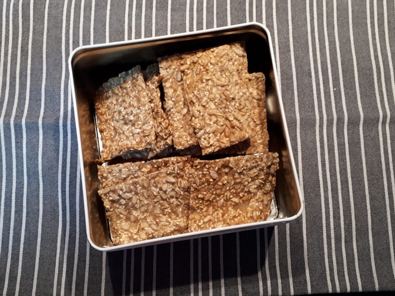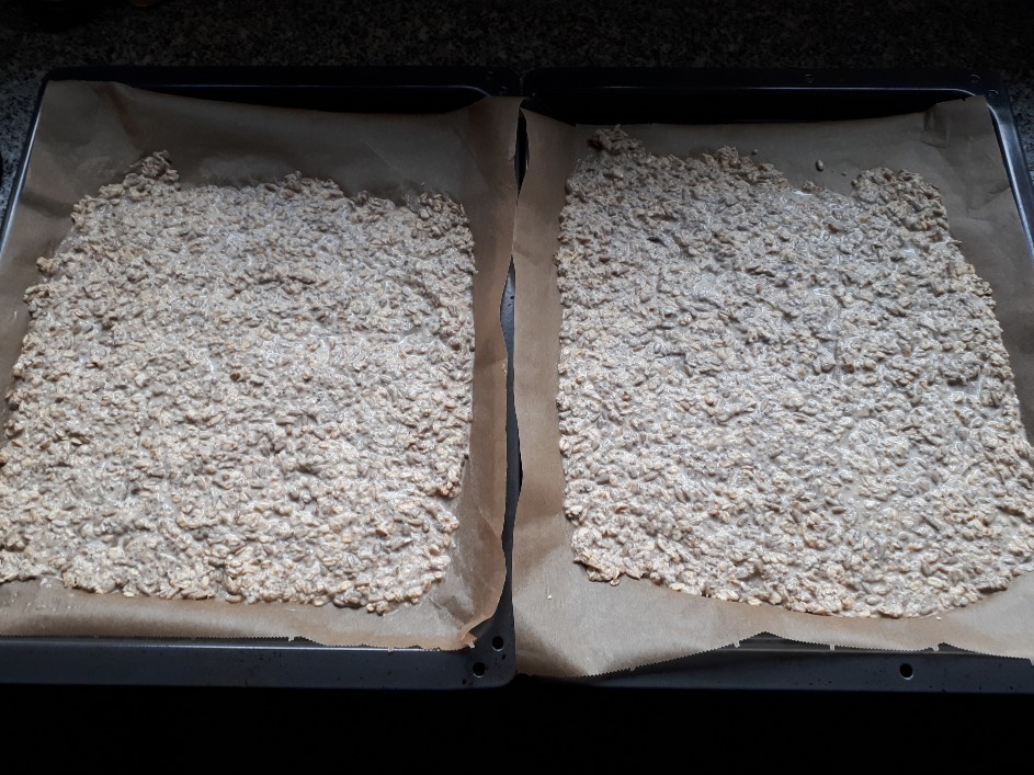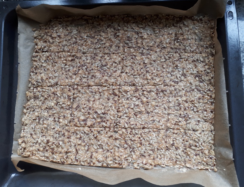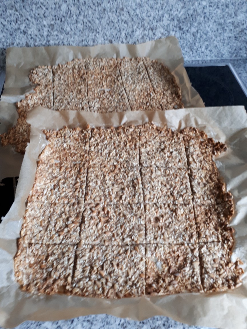 Gerade habe ich nochmal Knäckebrot im Ofen. Dieses Mal alles nach Rezept.
