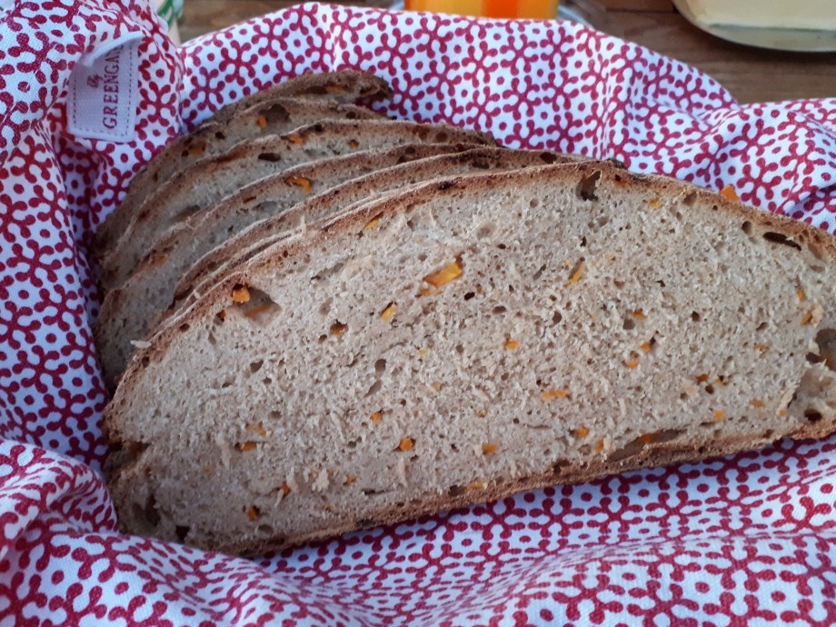 Geschmeckt hat das Brot sehr gut, feucht durch die Karotten. Es ist ein recht schweres Brot mit einer wirklich sehr guten Kruste.