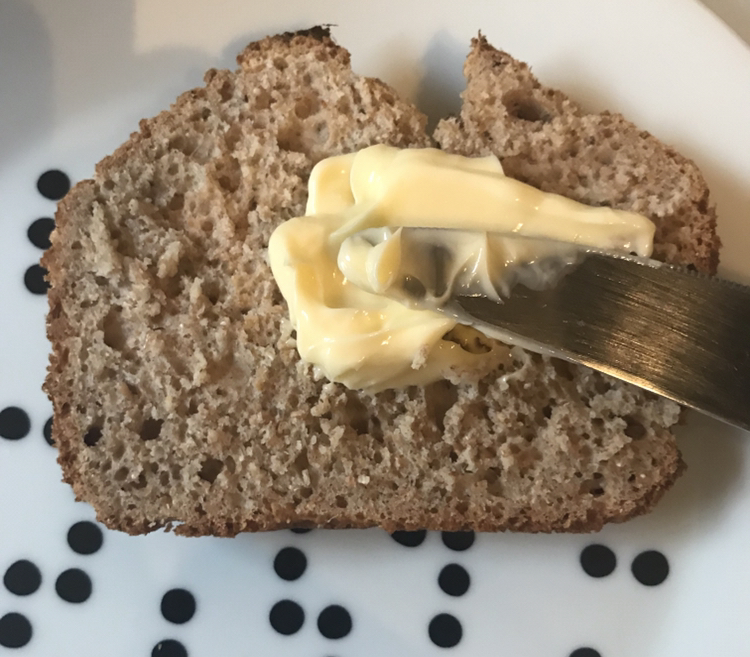 Der Gatte meinte aber schon, es wäre ihm zu brotig. Er liebt sein Toast am Morgen und hat es heute gegessen. Was auch immer er mit "zu brotig" meint. Vielleicht zu fest? Toast ist ja eigentlich immer etwas labberig