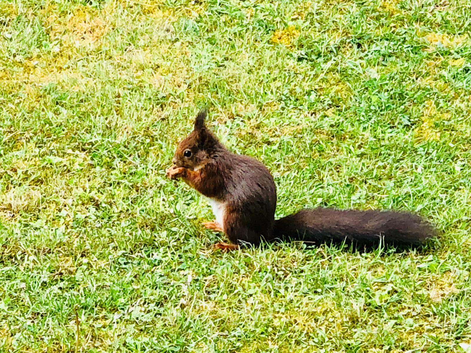 Weil ich beim Kaffee trinken Besuch von unserem Eichhörnchen hatte.