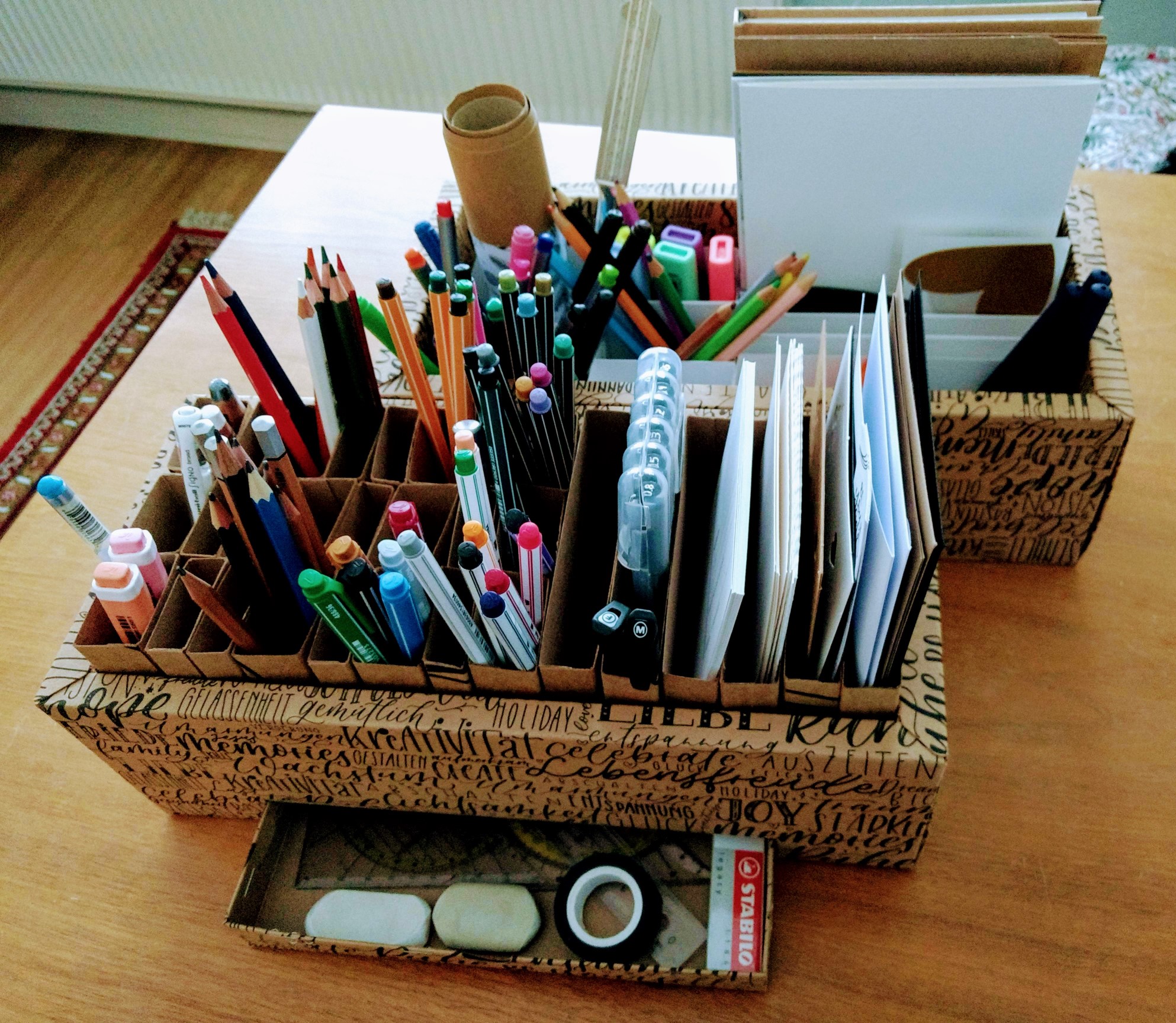 Sehr schön geworden. Wir haben gerade fürs Büro "ordentliche" Lösungen gesucht.... Wäre eine gute Idee zum nachbauen.