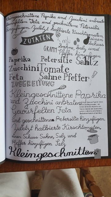 Ich habe mir das Handlettering-Buch von Frau Annika besorgt und daraus die beiden Sprüche abgepaust. Die finde ich so schön und irgendwann will ich sowas selber hinkriegen. Deswegen habe ich mir noch das Übungsheft dazu gekauft und kritzel jetzt fleißig drin rum. Momentan ist noch alles krumm und schief, aber ich hoffe, dass es irgendwann besser wird