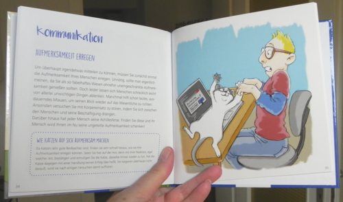 Damit das Buch nicht gänzlich für die Katz’ ist – schließlich ist es ja in der Regel der Mensch, der es bezahlt -, bekommt auch der Zweibeiner ein paar wertvolle Ratschläge. Nicht, dass er noch von seiner cleveren und gut instruierten Samtpfote über den Tisch gezogen wird!