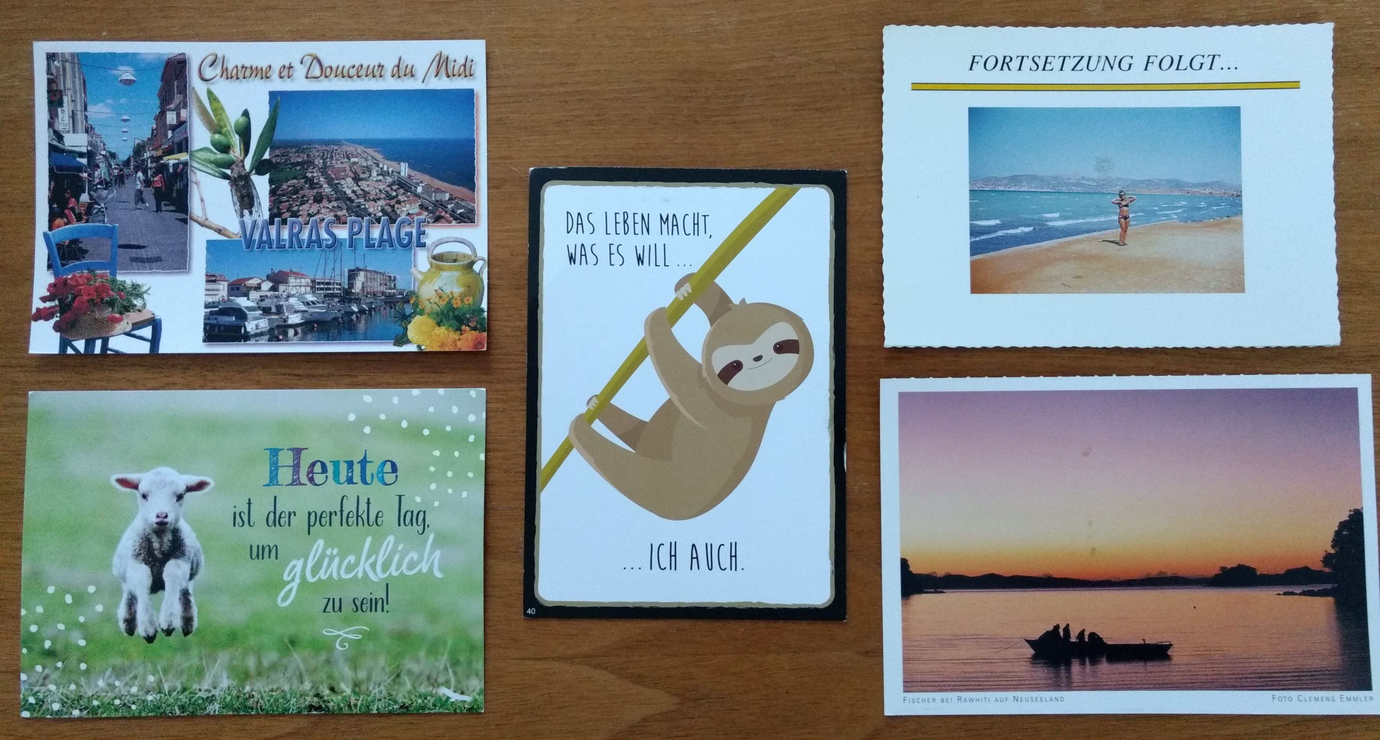 , ich hab mich sehr gefreut. Ich hab von dir auch schon viele Buchtipps bekommen und freu mich schon auf die Leserunde.Ich hab drei Karten gleichzeitig eingeworfen vor 1,5 Wochen. Die erste kam am übernächsten Tag an, die nach Frankreich ist auch schon angekommen. Die dritte hat sich wohl verlaufen.