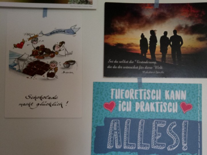 Ich hab es auch wieder geschafft, einige Karten zu schreiben, die ich gleich noch in den Briefkasten werfe.