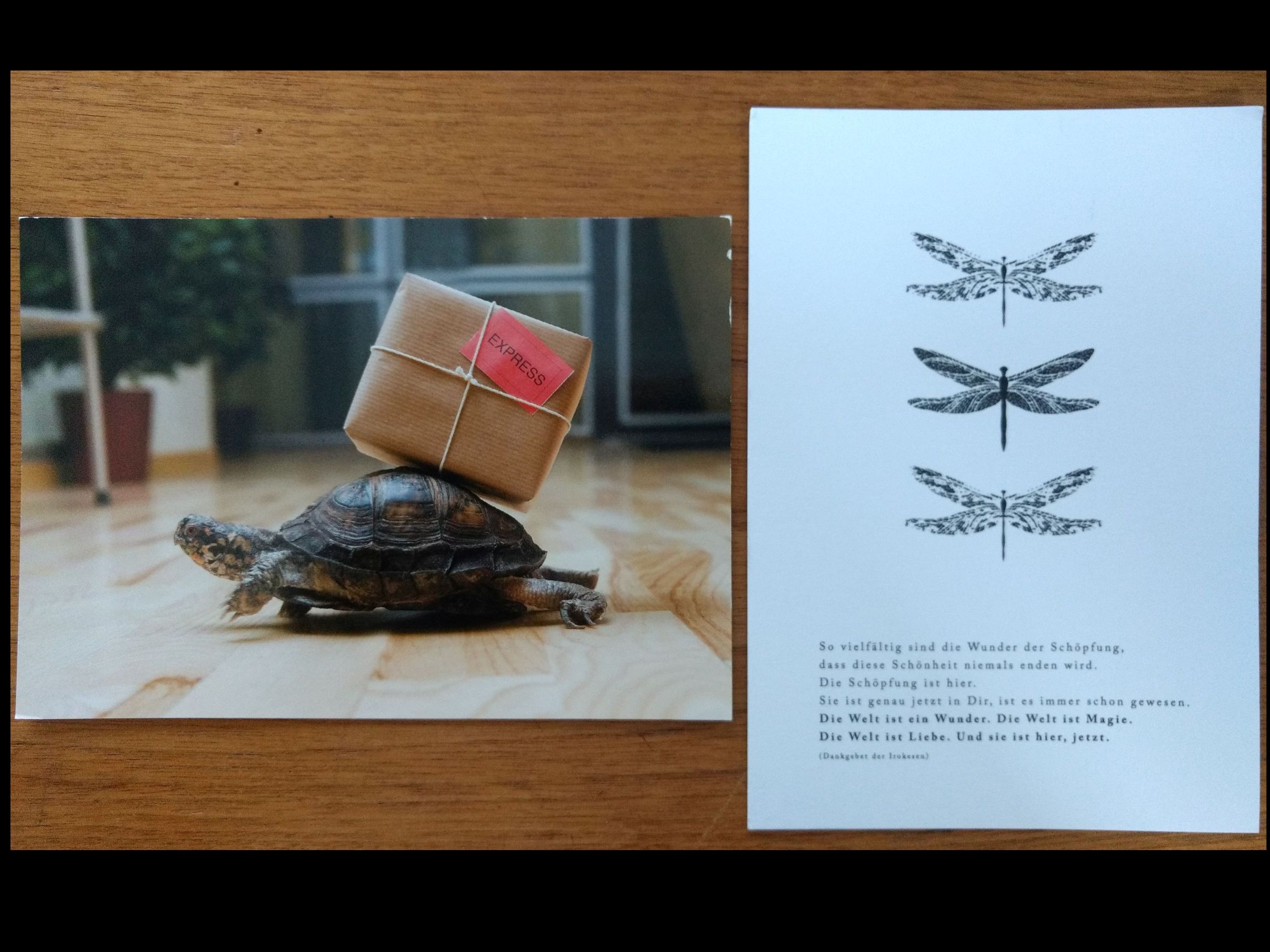 Ich hab heute eine Karte von Schubi bekommen aus ihrem Kurz Urlaub, vielen Dank.
