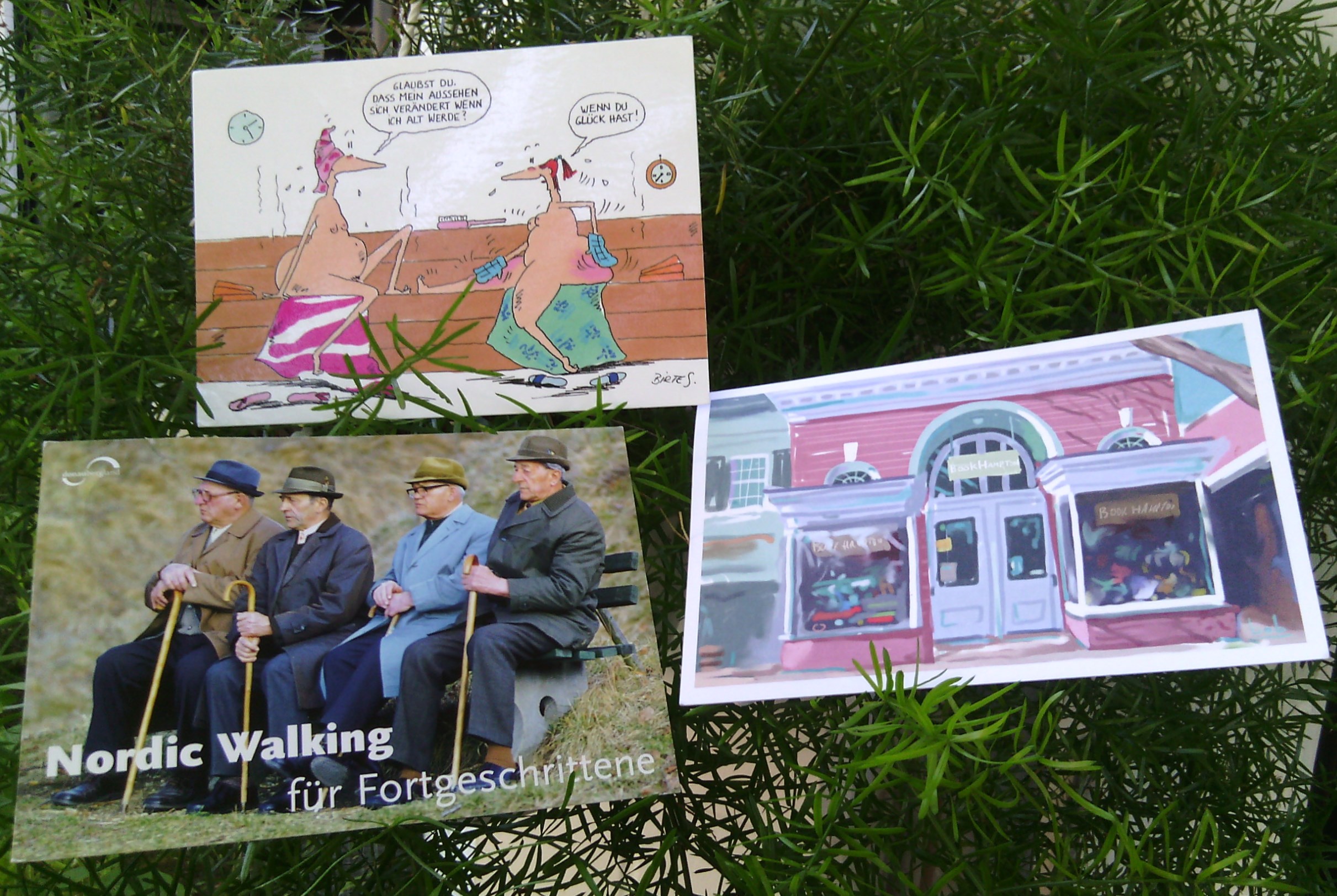 Ich habe soeben meine zwei ersten Karten geschrieben, in Ermangelung von 60 - Centmarken großzügig mit 70-Cent frankiert und nachher werfe ich sie dann in den großen Briefkasten, allerdings wird der erst morgen geleert.