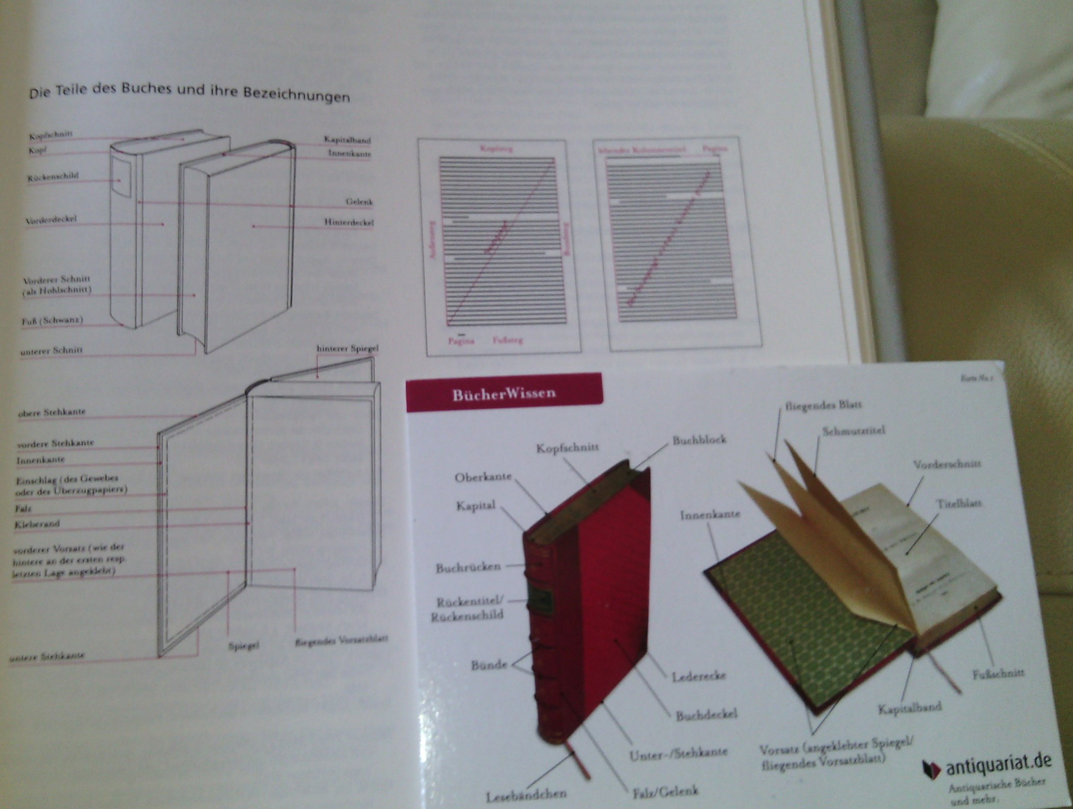 und UNTER der Briefkastenanlage erblickte ich ein mir bekanntes Bücherwissenmotiv. Ich hob es vom Boden auf und sagte zur Nachbarin "Das ist Post für mich. Ist dem Briefträger (m/w/d) wohl beim Einstecken aus den Fingern geglitten. belladonna - die Bestandteile eines Buches sind schon bemerkenswert, so etwas liebevolles bekommt man jetzt nur noch individuell beim Handbuchbinder. Hätte ich mich vor 25 Jahren zum Schwerpunkt Bücher prüfen lassen, wären die Details prüfungsrelevant gewesen. :lache