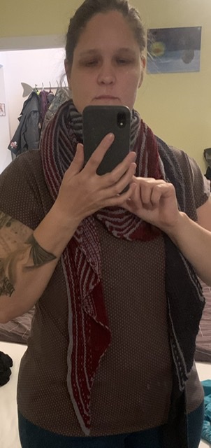 Aber dieses hier habe ich noch gefunden: hier trage ich einen Test-Entwurf vom "Skjoldehamn Gugel", den wollte ich für meinen Schwager nähen, der zu einem Feldbogen-Turnier etwas Passendes brauchte. Leider hatte sich dann herausgestellt, dass der Gugel die Armfreiheit einschränkt, also durfte er erst nach dem Turnier zum Einsatz kommen.