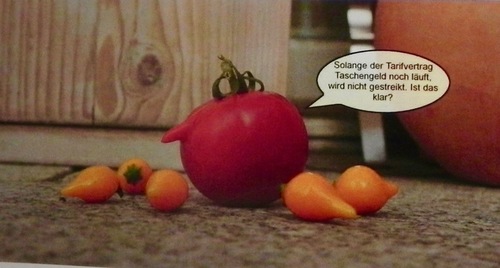 Ob man es als Urheber solcher Cartoons fertigbringt, seine Models nach dem Fotoshooting zu verspeisen? Jetzt, wo ich weiß, Tomaten auch Leute sind, stelle ich mir das schwierig vor.