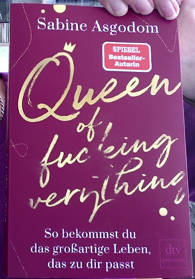 Sabine Asgodom: Queen of f*cking everything. So bekommst du das großartige Leben, das zu dir passt, München 2020, dtv Verlagsgesellschaft, ISBN 978-3-423-26275-0, Klappenbroschur, 205 Seiten, Format: 13,6 x 2,5 x 21,1 cm, Buch: EUR 16,90 (D), EUR 17,40 (A), Kindle: EUR 14,99, auch als Hörbuch lieferbar.