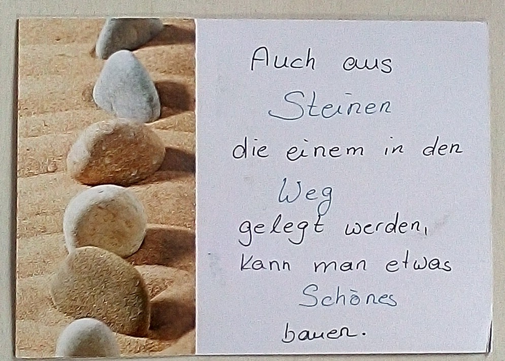 Ich bin bloß etwas enttäuscht von dem Papier. Früher war die Pappe noch etwas stabiler. Habe dann immer Angst, dass die Karte in der Sortiermaschine hängen bleibt. Aber zumindest dieses Mal hat es ja gut geklappt.