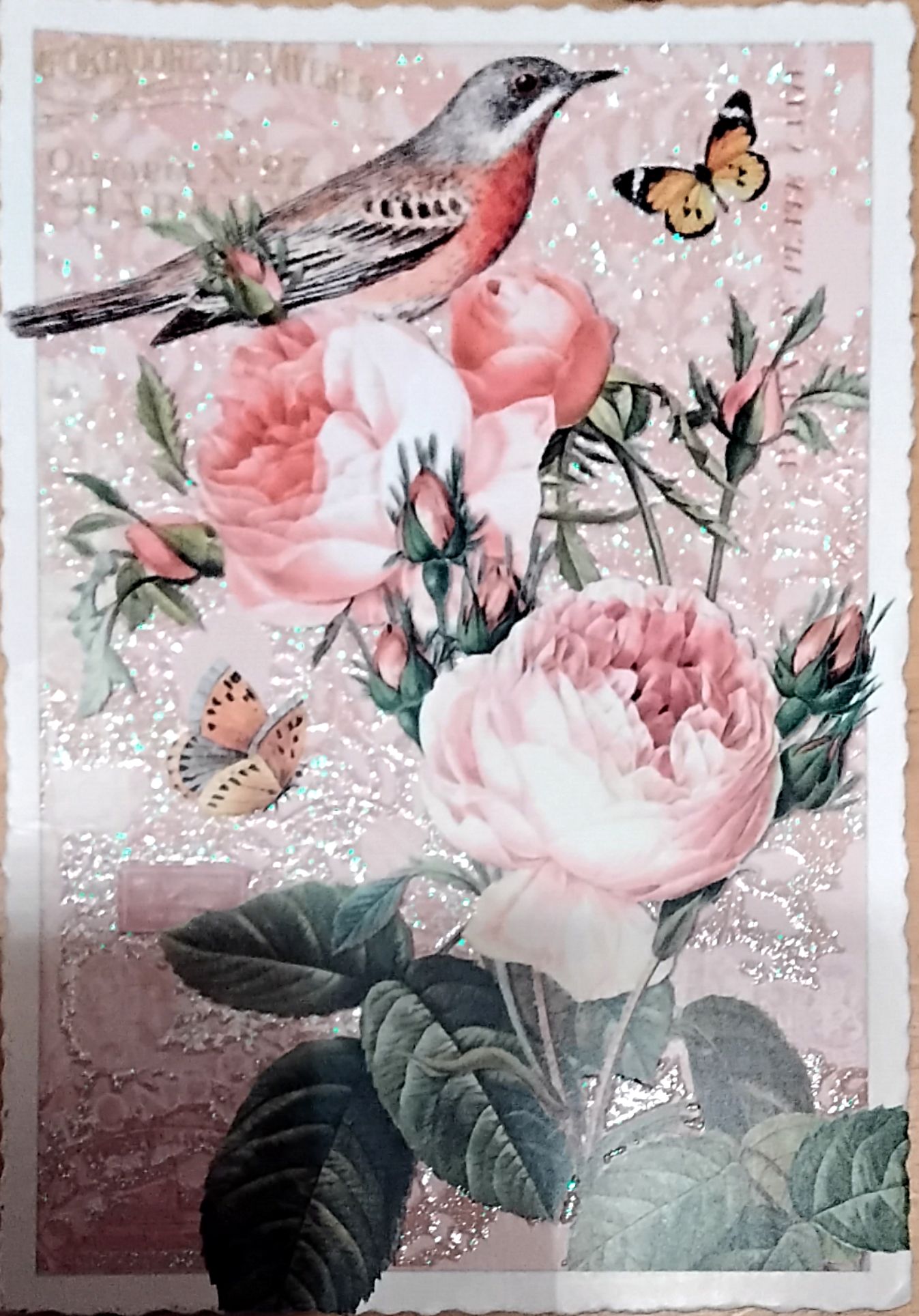 Vielen Dank liebe Rosenstolz für diese schöne frühlingshafte Karte mit Blumen und Schmetterlingen. Sie schaut so hübsch nostalgisch aus, ich mag das.