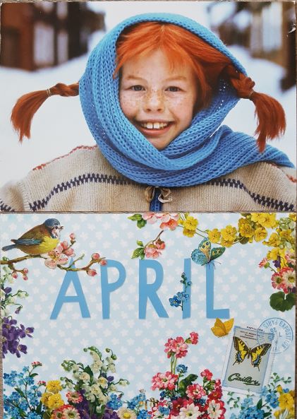 Und gestern sind nochmal zwei Karten hier eingetrudelt: Eine winterliche Pippi von Gwendy und der April von Rosenstolz . Danke, ihr beiden!