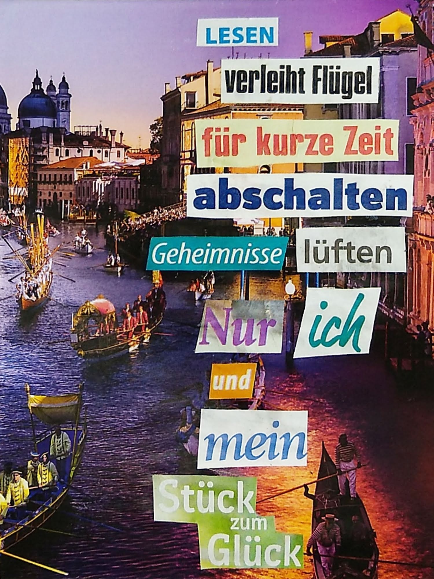 Neulich hab ich mich auch mal an einer Collage mit Zeitungspapier und Wasserfarben versucht - für das, was ich an Talent und Material (alter Aldi-Malkasten und normale Blankokarteikarten) zur Verfügung hatte, bin ich eigentlich ganz zufrieden!