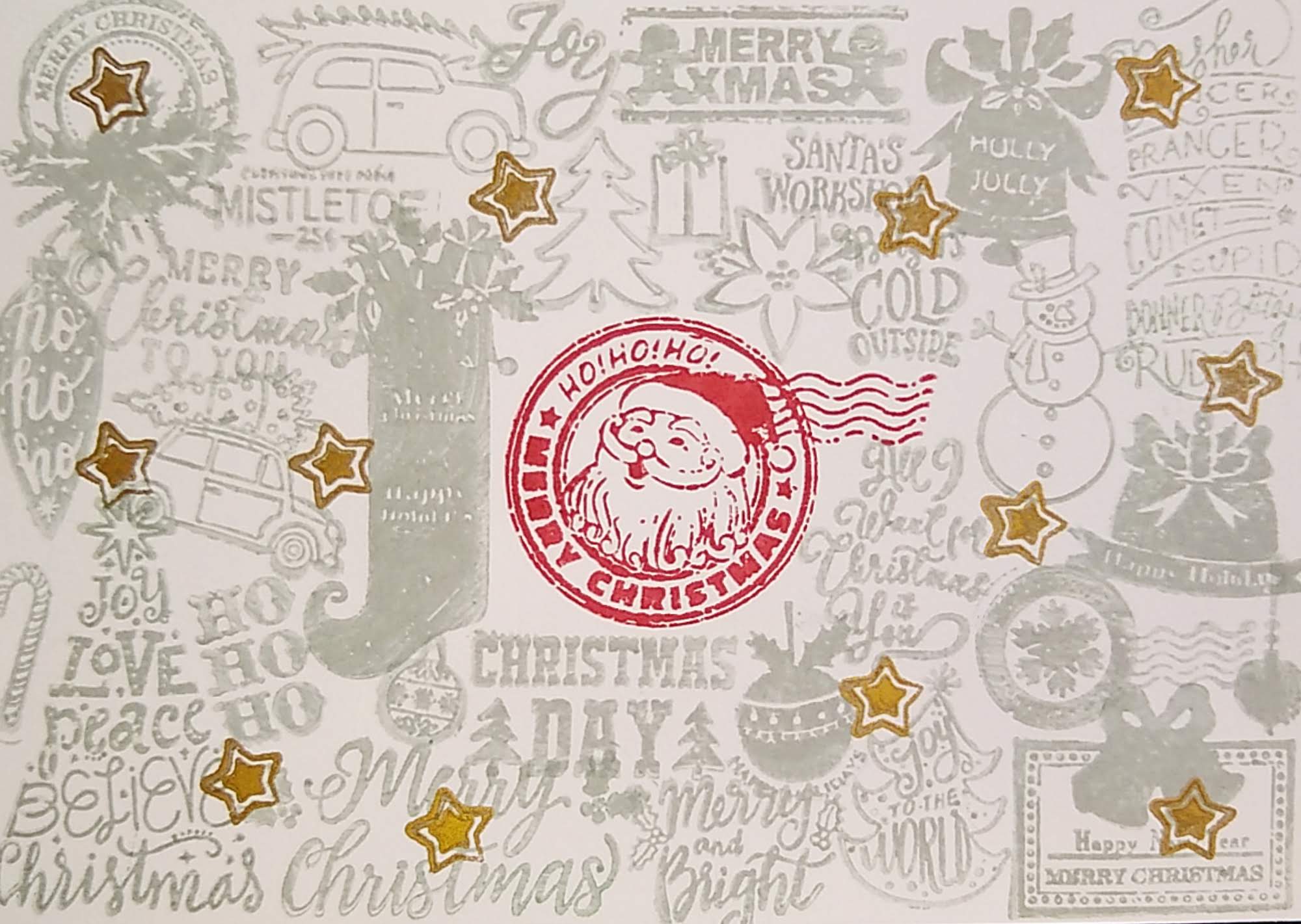 Ich bin ja jetzt auch an den Weihnachtskarten dran, gestern Abend hab ich mit Stempeln experimentiert - hier mal ein kleiner Einblick: