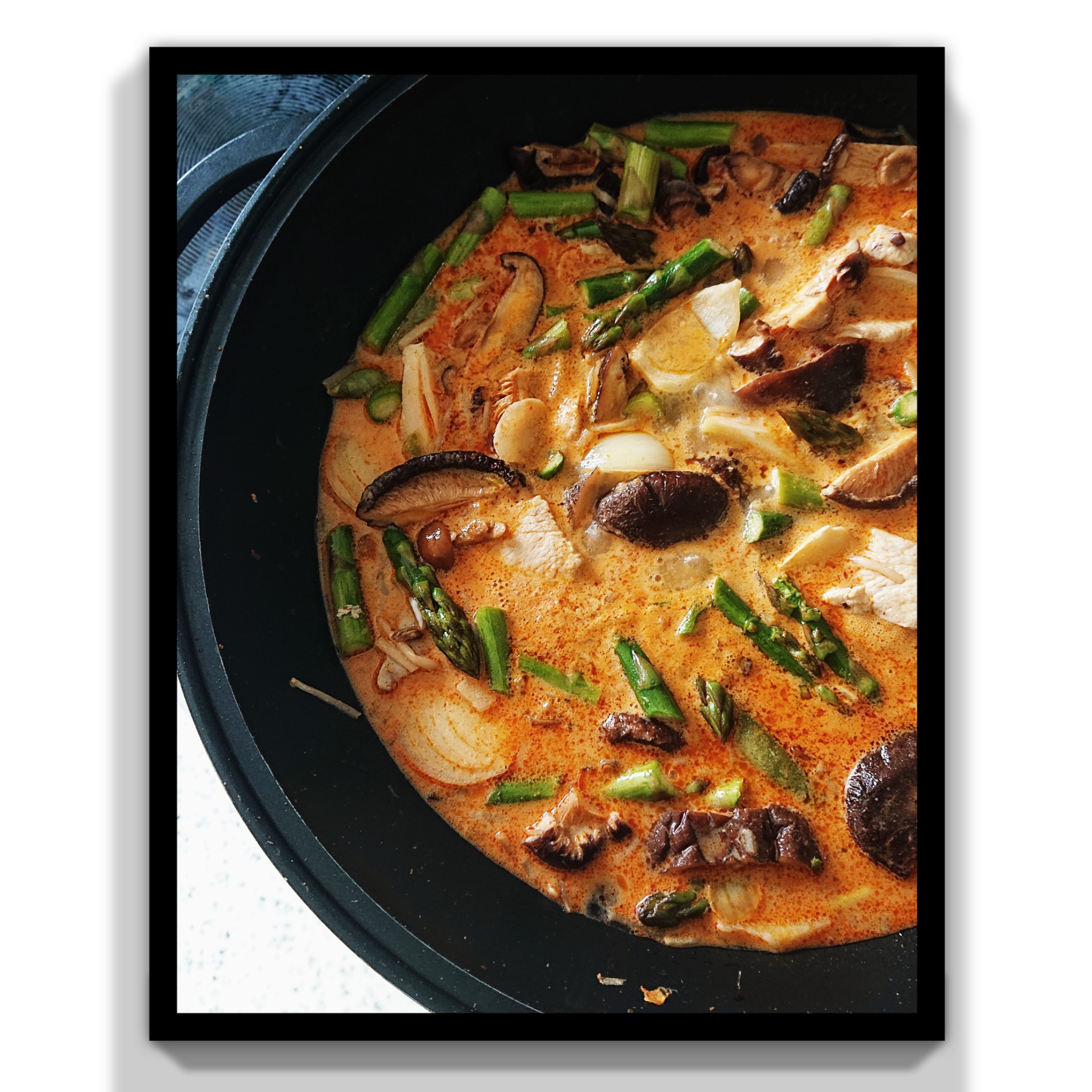 Dose Thai-Suppe verlängert mit Paprikastückchen und Jasmin-Reis
