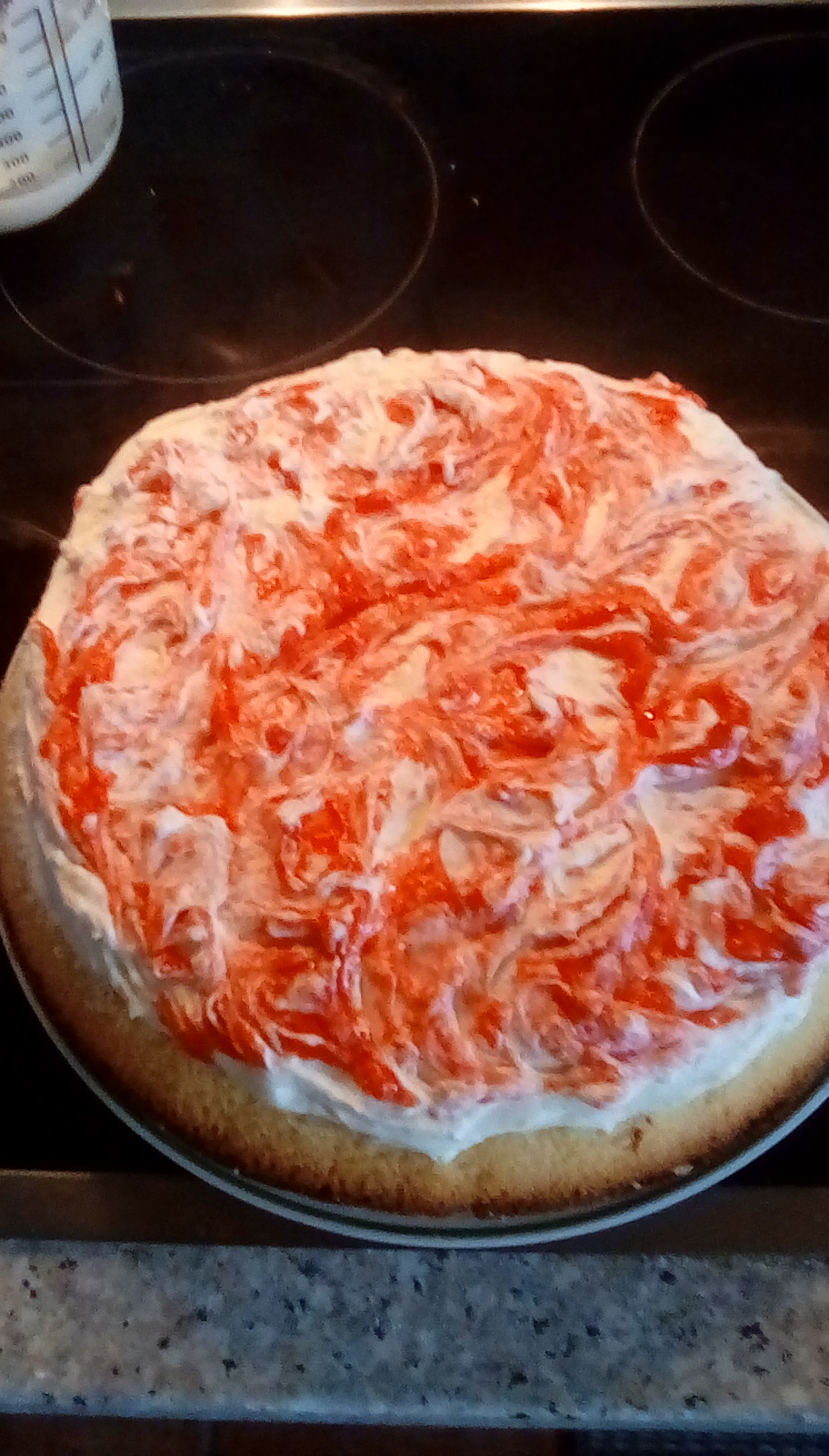 so dieses Rezept auf Youtube gefunden Italienischer Erdbeerkuchen. Unter der Sahne sind natürlich auch Erdbeeren versteckt, aber der rote Guß auf den Erdbeeren wird noch mit pürierten Erdbeeren vermischt. Bin gespannt wie der Morgen schmeckt.
