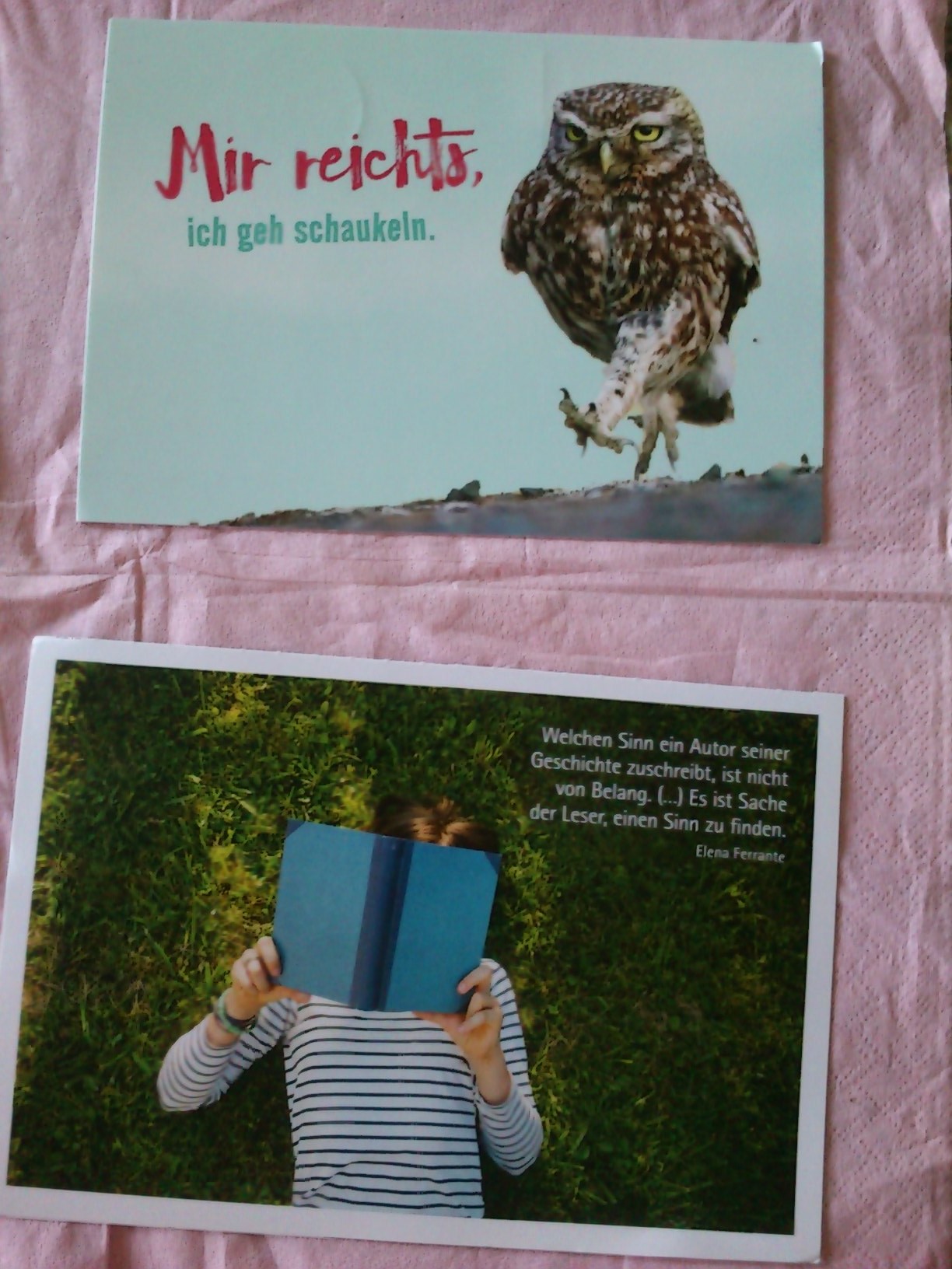 Heute bin ich von meinem Nürnberg-Wochenende nach Hause gekommen und dort haben mich gleich zwei Karten mit lieben Eulengrüßen erwartet.