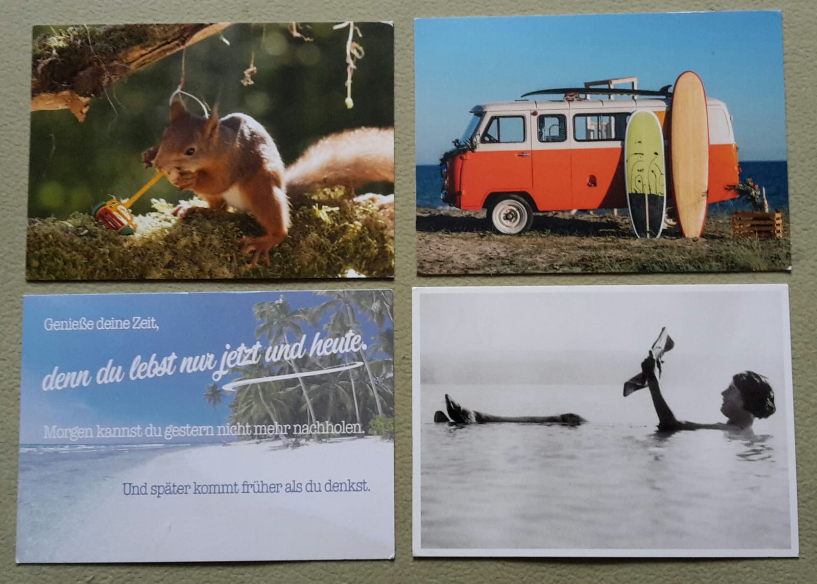 Hier liegen noch einige Postkarten, die auf die Reise gehen möchten.