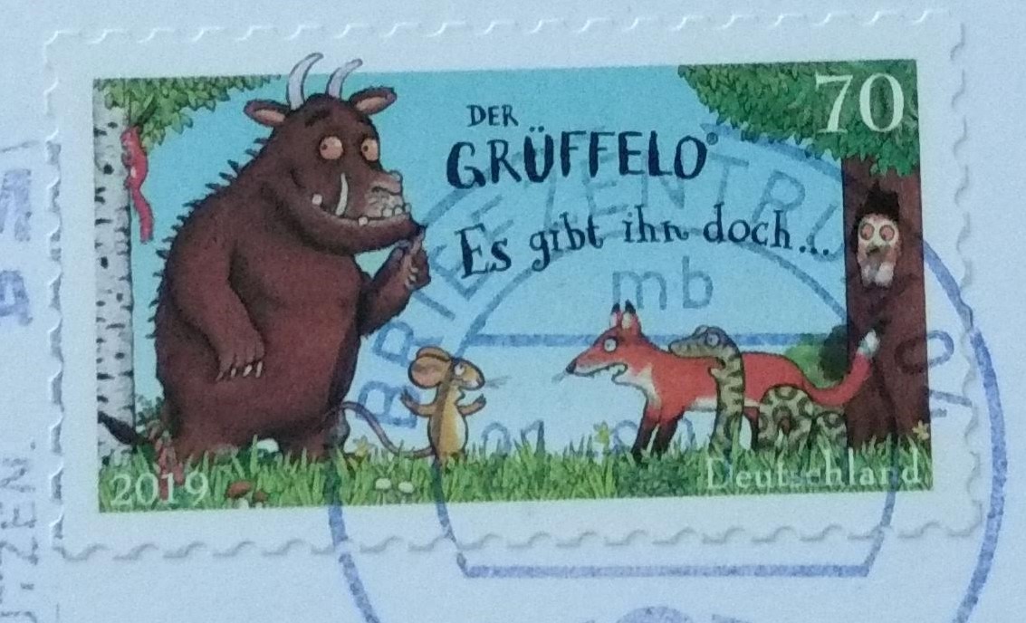 Und dann ist auch noch eine Grüffelo-Briefmarke darauf!