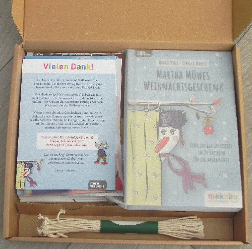 Makabu® ist meines Erachtens ein interessantes Konzept, weil man nicht nur Gegenstände aus einem Adventskalender nimmt, sondern aktiv etwas gestalten kann. Ein bisschen schade finde ich, dass der Verkauf nicht auch über den Buchhandel läuft. Man hat ja seine bevorzugten Kanäle. Sich extra den Namen eines Shops merken zu müssen um den Kalender dort zu bestellen, ist eine Hürde, die vielleicht nicht alle Interessenten nehmen werden.