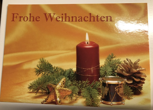 Danke für die erste Weihnachtskarte in diesem Jahr. Dir und deinen Lieben auch schöne Weihnachtstage.