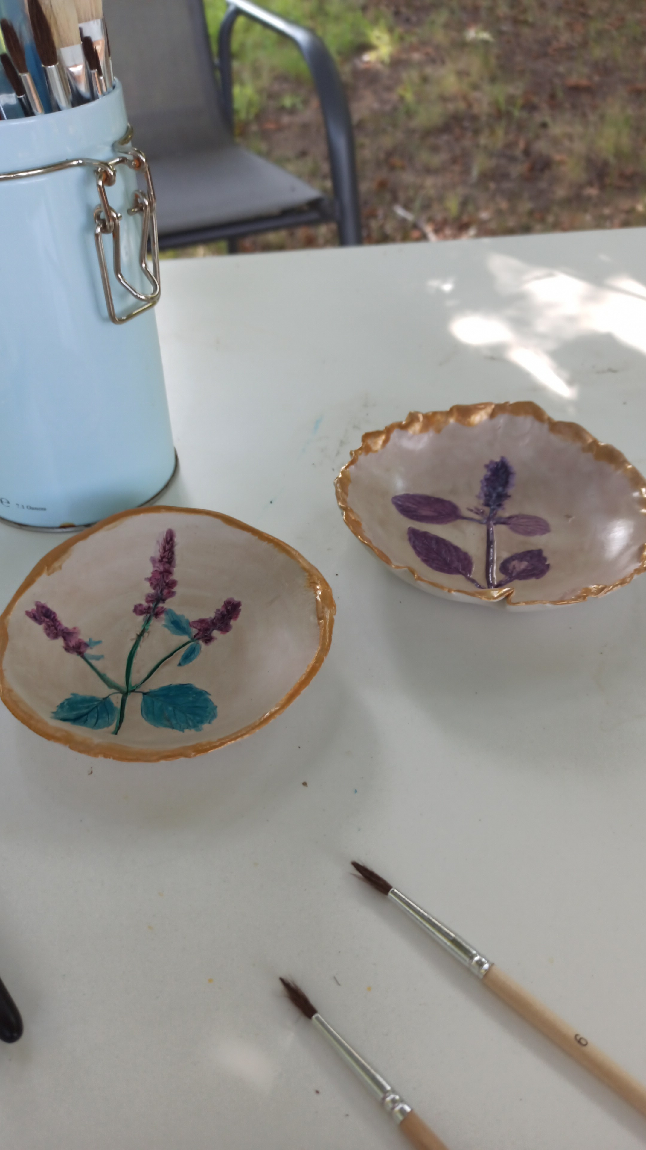 Ich mache gerade verschiedenste Seifenschalen aus Ton mit Heilpflanzenabdruck