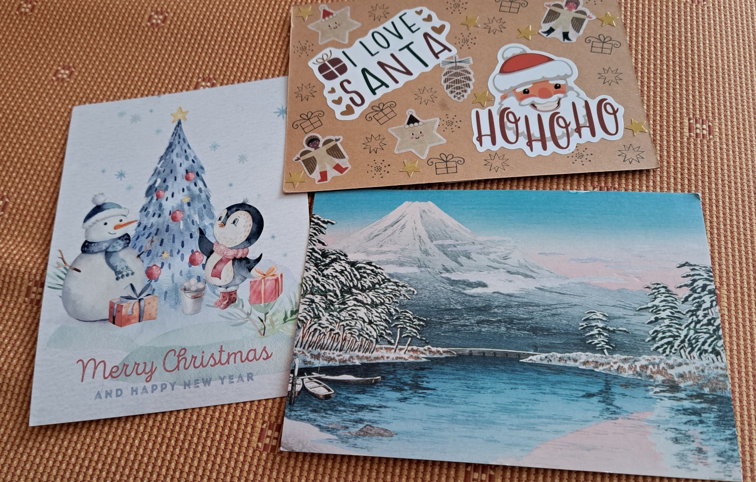 Ich durfte eben nach der Arbeit auch drei schöne Weihnachtskarten aus dem Briefkasten befreien.