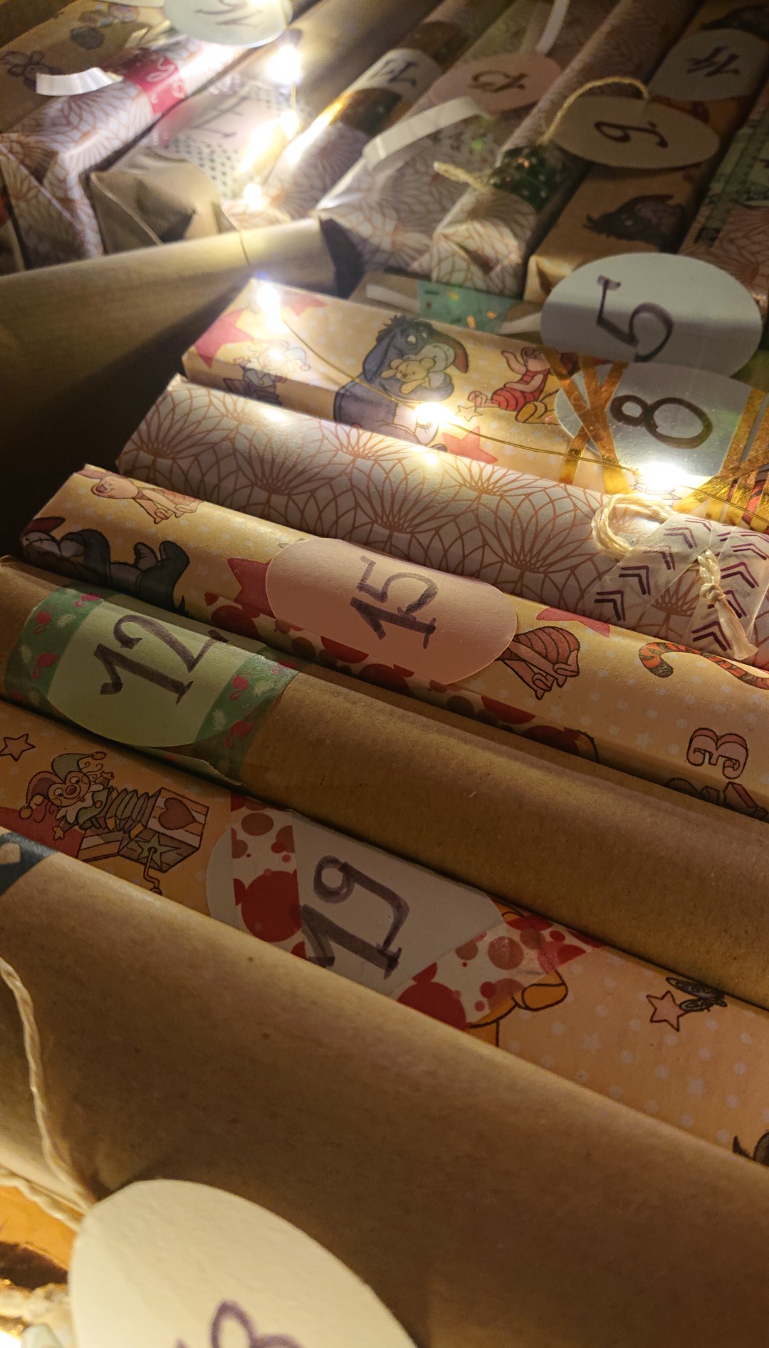Da ich aber nun ein ganzes Jahr Zeit hatte, Bücher auf Flohmärkten und öffentlichen Bücher Schränken zu sammeln, habe ich tatsächlich für jede 24 Bücher, an Nikolaus und Weihnachten sogar zwei.