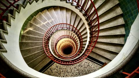 Erinnert mich an eine Treppe im Sandwerk bei Montpellier...Aussen-, Wendel-, Metalltreppe - ich habe sie geliebt. Die Mitarbeiter oben in den Büros etwas weniger...die waren