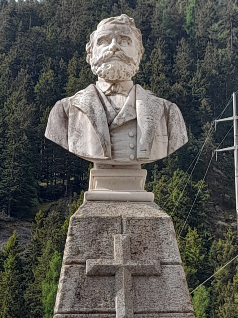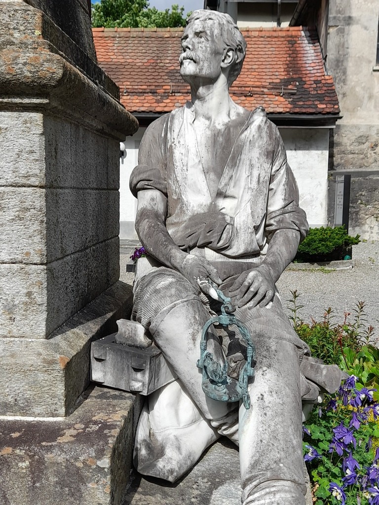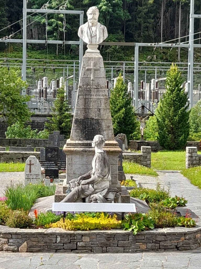 Gegenüber unserer Ferienwohnung in Göschenen war der alte Friedhof. Dort steht ein Denkmal für die Arbeiter des Tunnels. Das muss man dazu schreiben, denn es sieht aus wie ein Denkmal für Louis Favre. Er auf dem Sockel und unten ein Mineur (mit der typischen Öllampe) der andächtig zu seinem "Patron" aufblickt.