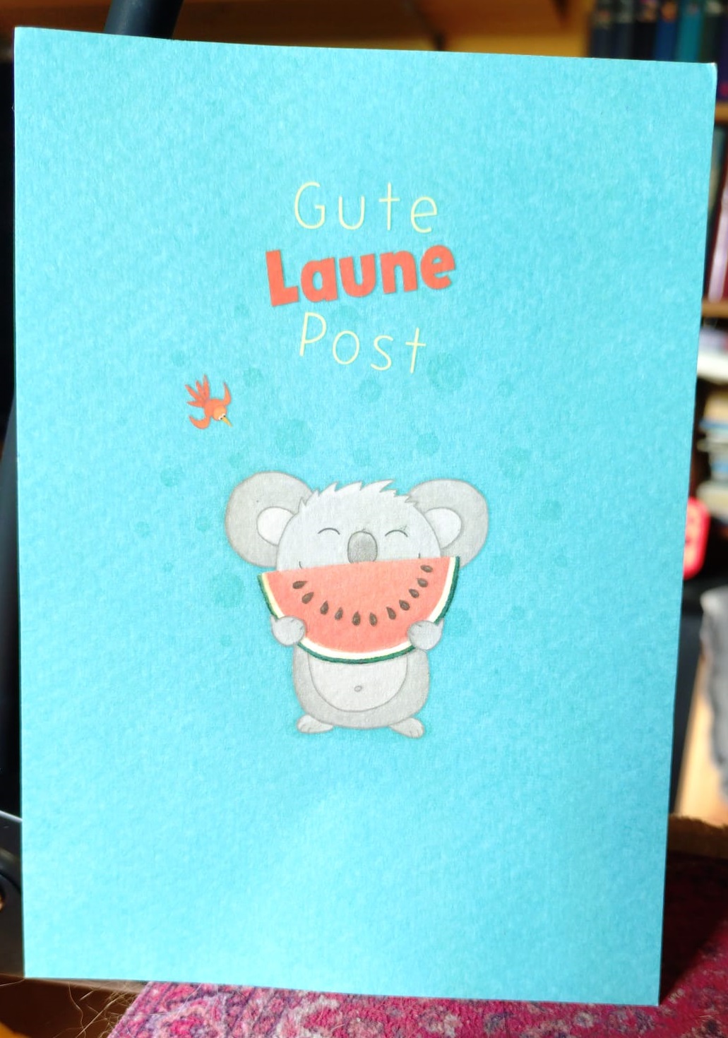 Ich hatte heute auch eine liebe Karte von LeseBär und Muffelinchen vorgefunden. Auch wenn meine Reha anders geendet ist als gewünscht, habe ich mich riesig über die Postkarten zu meiner Rückkehr gefreut.