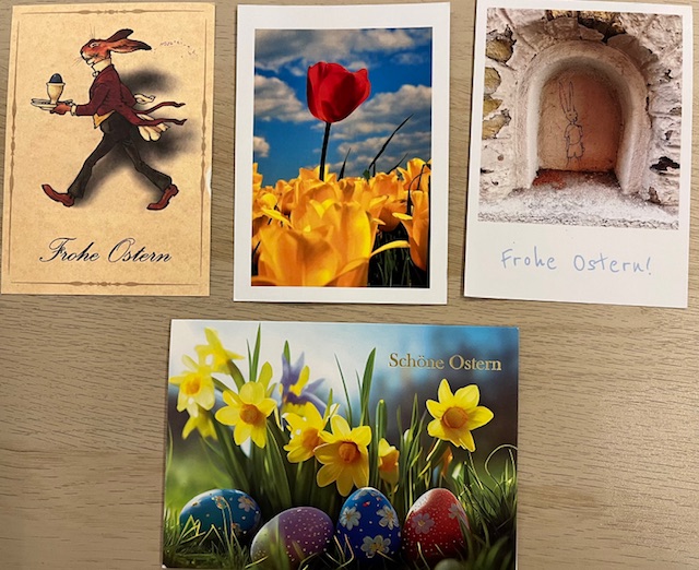 Ich vermelde, dass heute Vormittag noch ein paar Osterkarten auf Reisen gehen werden.