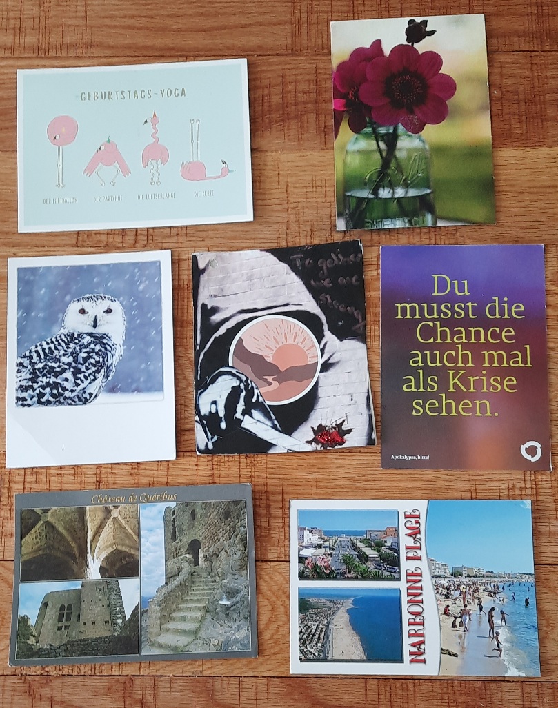 Und ich habe auch endlich mal wieder Postkarten geschrieben. Morgen kommen sie in den Kasten.