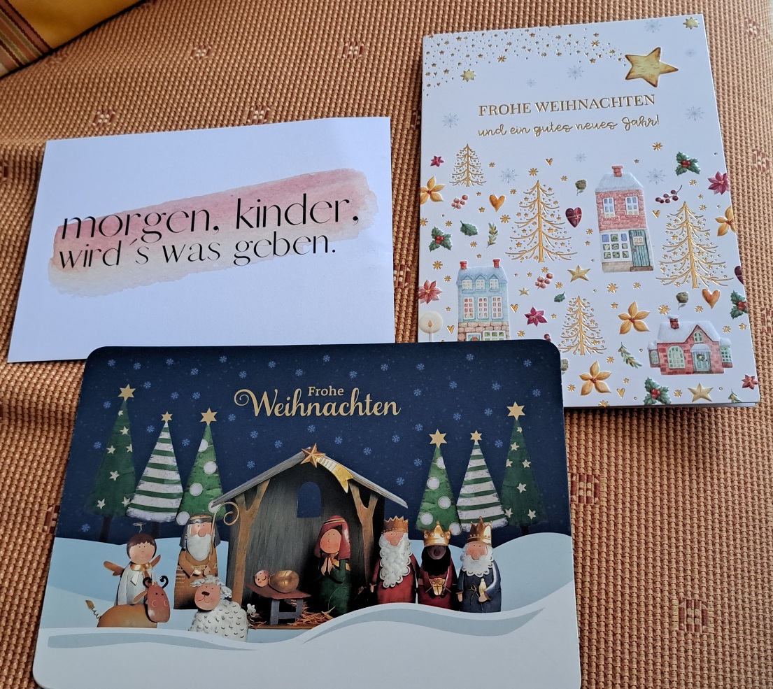So viele wunderschöne Weihnachtskarten, auch mit lieben Willkommensgrüßen. Es wird noch etwas dauern, bis ich alle gesichtet habe. Bin ja erst seit gestern wieder zuhause und komme gerade im hier und jetzt an. Und ich mach mir keinen Stress.