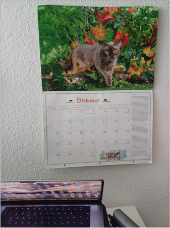 Das Prinzip „Wandkalender“ mag nicht mehr modern sein, aber das ist mir egal. Solange es diesen Katzenkalender gibt, wird jedes Jahr einer in meinem Arbeitszimmer hängen.