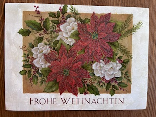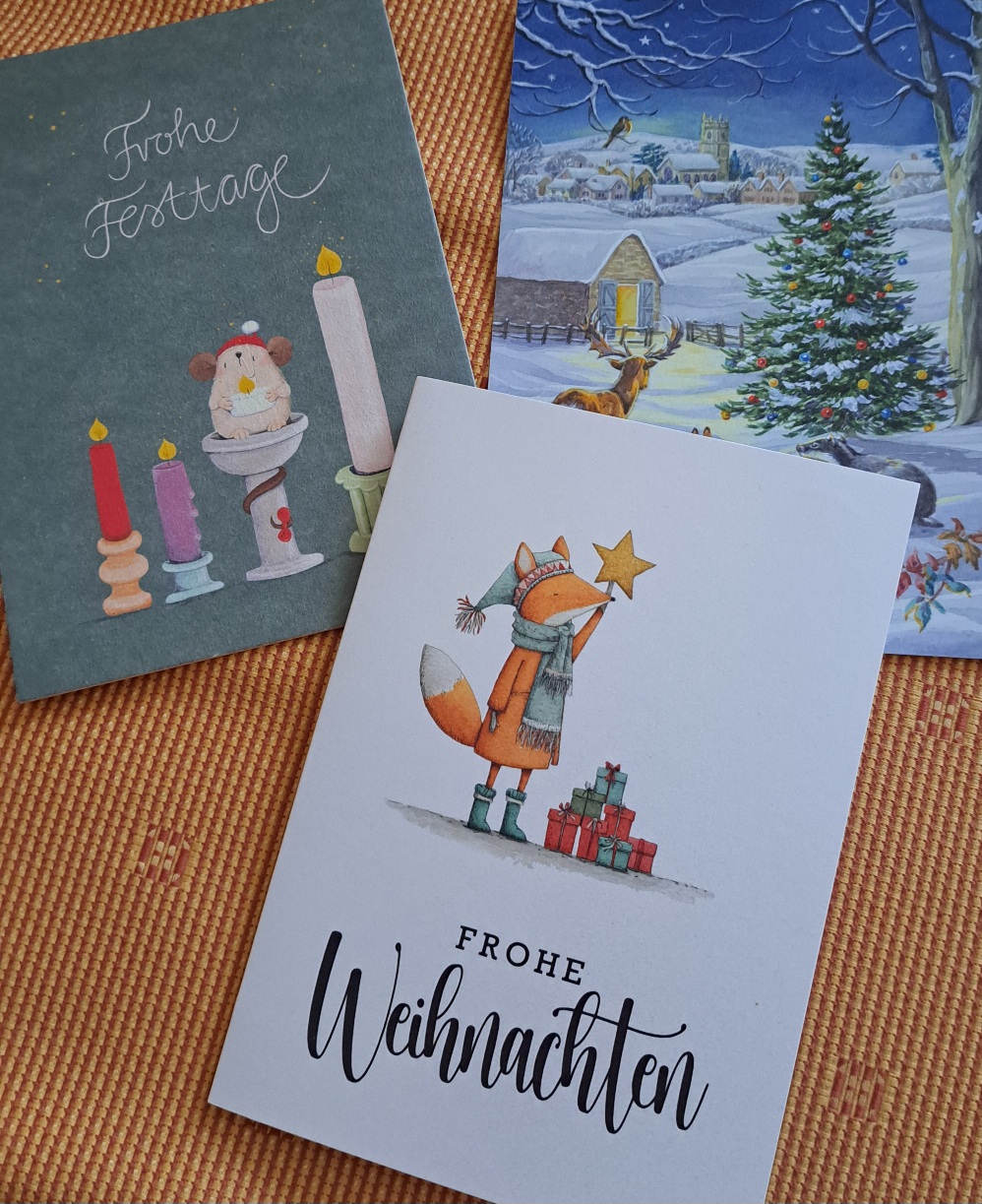 Ich habe gerade die letzten Weihnachtskarten geschrieben, morgen bringe ich sie zur Post. Ich hoffe, ein paar davon kommen noch bis zum 24. an.