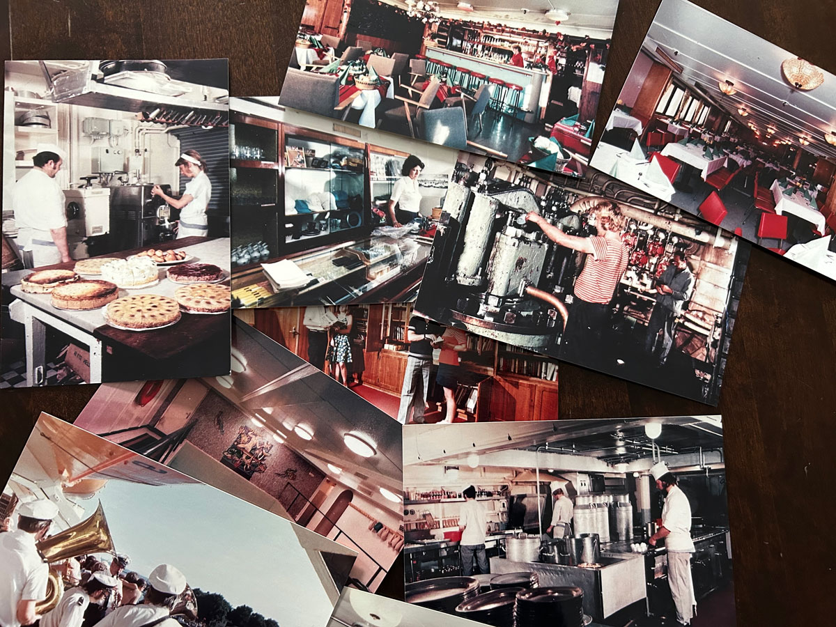 • Wie versprochen, möchte ich euch auch zu diesem Abschnitt noch ein paar zusätzliche Informationen liefern. Ihr seht hier Ausschnitte aus Werbeheften der "Völkerfreundschaft" und einen Erinnerungsteller von der Völkerfreundschaft, auf dem man auch gleich ein Menü ablesen kann. Diese Prospekte waren eine tolle Quelle, aber ich habe von ehemaligen Schiffsbesatzungsmitgliedern auch zahlreiche private Fotos der Inneneinrichtung und von den Außenanlagen bekommen. Die kann ich euch leider aus rechtlichen Gründen nur als "Haufen" zeigen, damit ihr einen Eindruck davon bekommt.