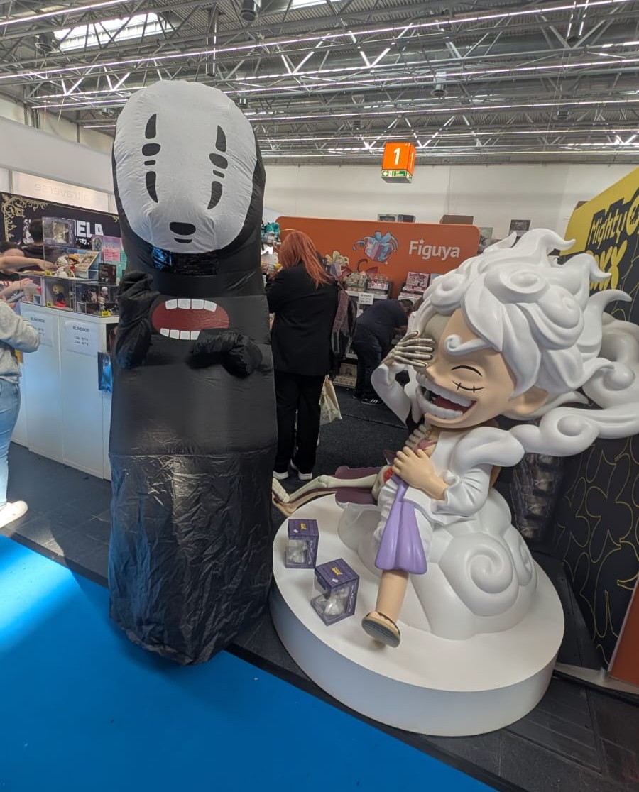 Genau, das ist das Ohngesicht aus "Chihiros Reise ins Zauberland". Das Kostüm hat ein Gebläse und oberhalb des roten Munds ist ein Sichtfenster. Ich bin damit ungefähr 2,5m groß