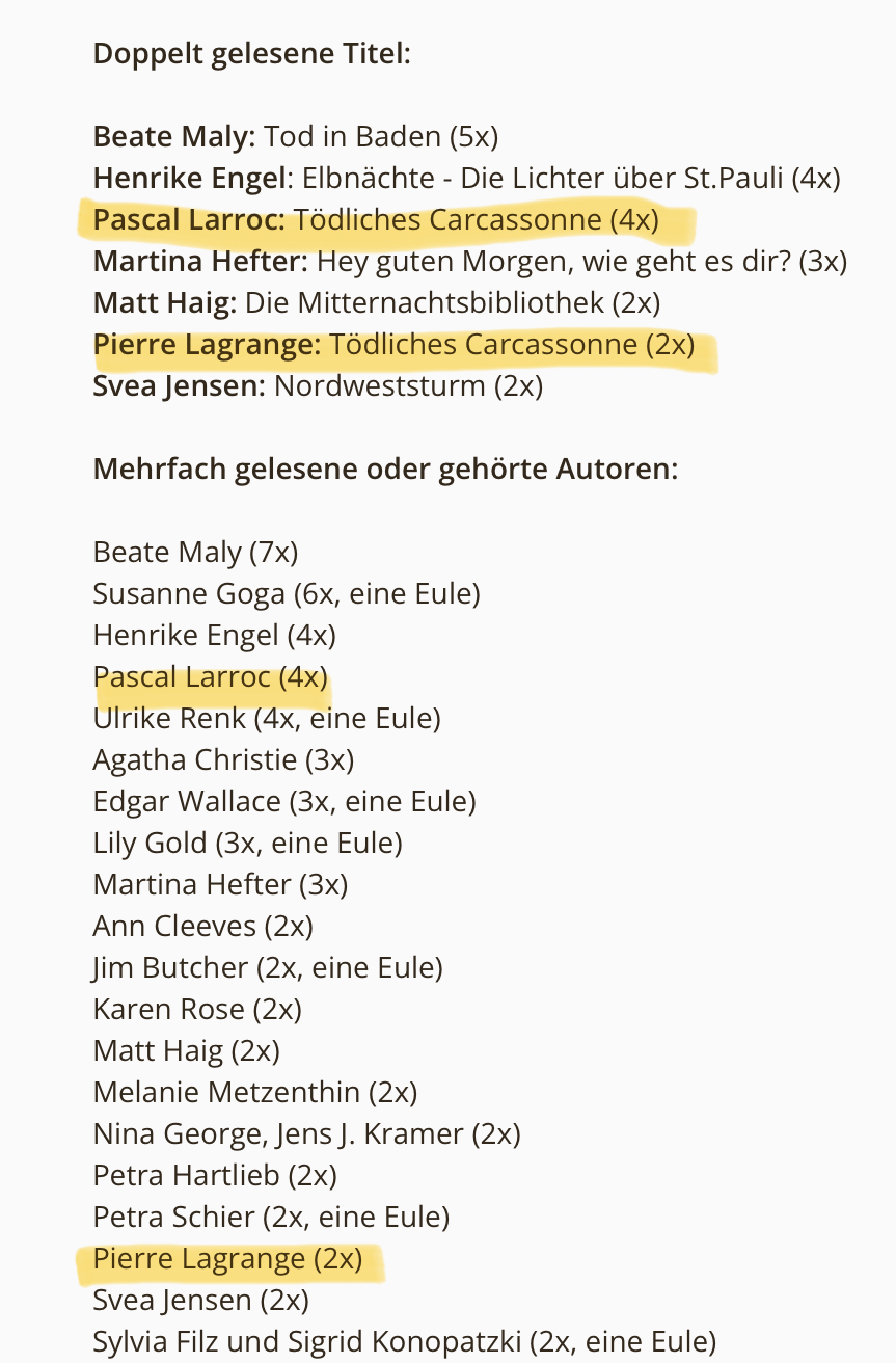 Frohes Lesen und Listenerstellen euch allen