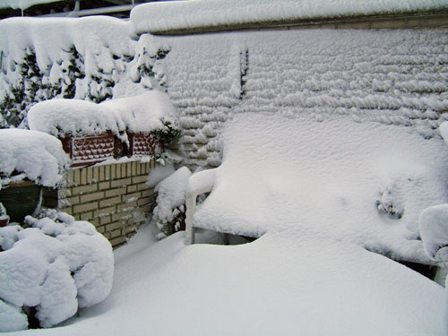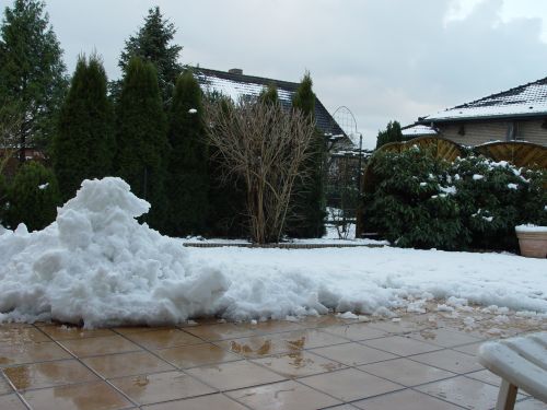 Der Schneeberg ist gerade vom Dach gerutscht und zusammen geschoben worden.
