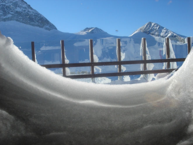 In Berlin fusselt's nur ein bißchen, aber das Bild habe ich vor zwei Wochen aus einem Fenster heraus aufgenommen. Es war das Fenster der "Gletscherhütte" (3250 m ü. NN) auf dem Schlegeis-Gipfel, Hintertuxer Gletscher.