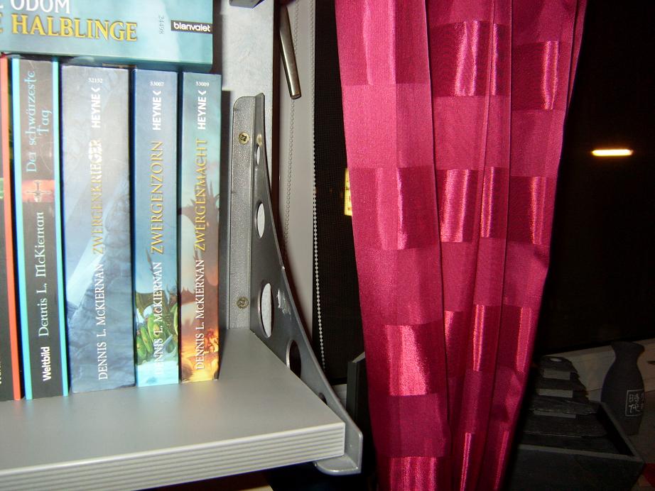 Du hast aber viele Bücher und viele Regale! Mich stören allerdings auch die Halterungen, da ist mir die Farbe auch egal, ich mag diese Halterungen für drunter generell nicht! Die hatte ich von einem Jahr oder so auch noch, aber dann hab ich mir komplett neue Bretter mit neuen Halterungen gekauft! Die konnte man auf meinen Fotos gar nicht so gut sehen... ich lichte die gleich mal von Nahem ab! Moment bitte!
